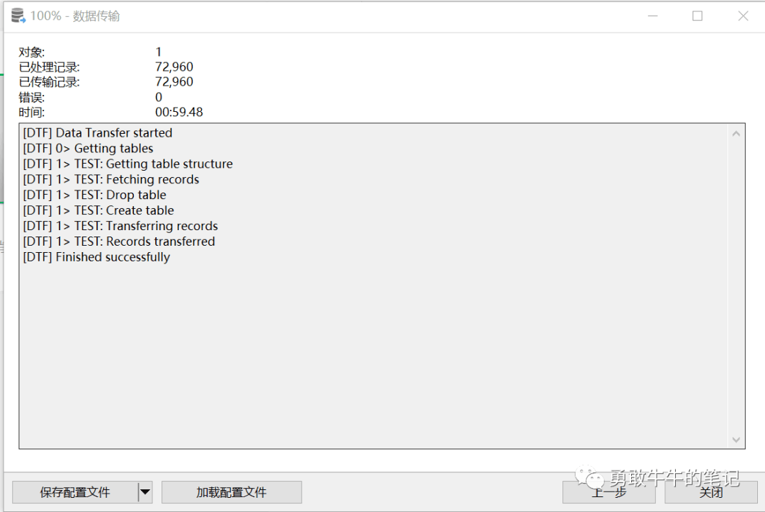 傳輸同步完成,整個同步的效率還是較慢的,7.2W的數據,用了1分鐘。