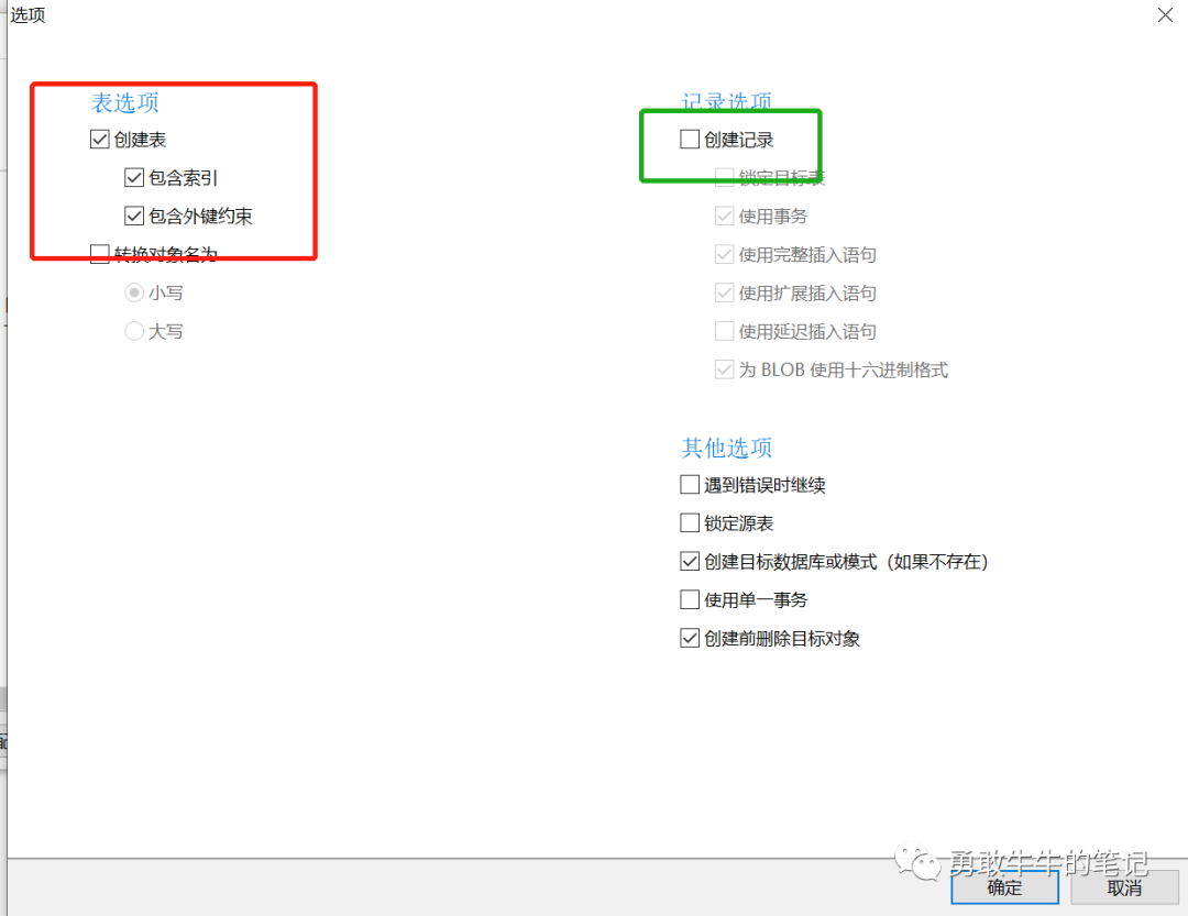 使用navicat工具進行表結構同步,步驟可以參考遷移方式一里面的操作,主要在數據傳輸同步時,選項里面只同步表結構,不創建記錄。