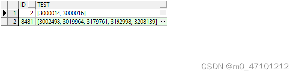 SELECT ID, replace(replace(replace(test /*替換的列*/, '[', ''), ']', ''), ' ', '') FROM table /*替換的表*/2、按逗號分割后結果