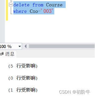 create trigger course_delon courseafter deleteasif exists(select * from sc, deletedwhere sc.cno=deleted.cno)begindelete from scwhere sc.cno in (select cno from deleted)enddelete from Coursewhere Cno='003'