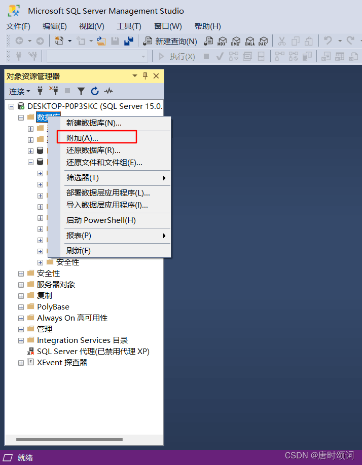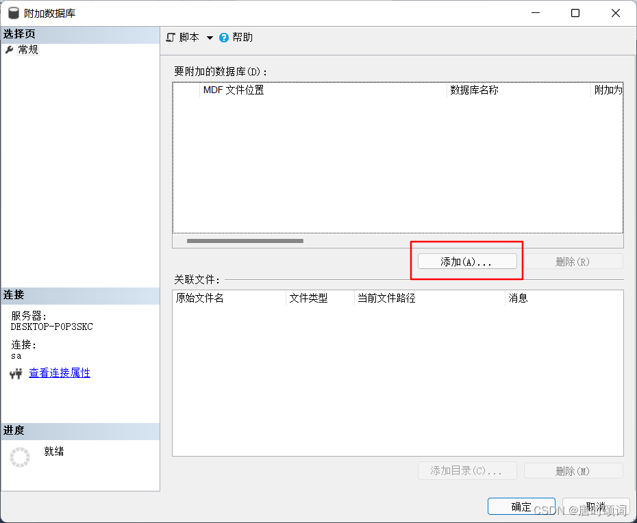 目錄一、sql server導(dǎo)入.mdf方法1.右擊數(shù)據(jù)庫(kù),點(diǎn)擊附加2.點(diǎn)擊添加3.選擇文件,點(diǎn)擊確定4.添加成功!二、如果出現(xiàn)錯(cuò)誤,處理方法總結(jié)一、sql server導(dǎo)入.mdf方法1.右擊數(shù)據(jù)庫(kù),點(diǎn)擊附加