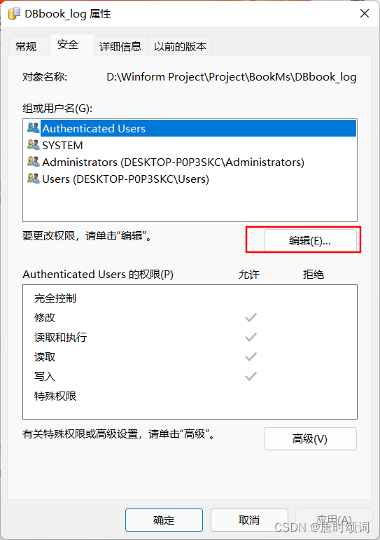 1.找到要添加的.mdf文件 —> 右擊 —> 屬性 —> 安全—>編輯