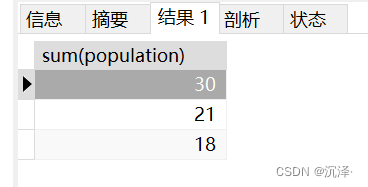 SELECT sum(population) from Table_A where country in ('中國(guó)','印度','日本')UNIONSELECT sum(population) from Table_A where country in ('美國(guó)','加拿大','墨西哥')UNIONSELECT sum(population) from Table_A where country not in ('中國(guó)','印度','日本','美國(guó)','加拿大','墨西哥');運(yùn)行結(jié)果: