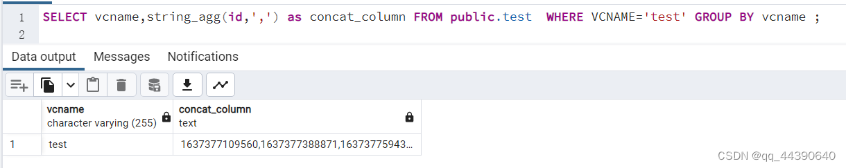 2、在PGADMIN中使用:可以使用STRING_AGG函數來實現相同名稱的多行字段內容拼接。具體語法如下: