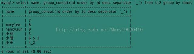 select name,group_concat(id order by id desc separator? '_')? from tt2 group by name;