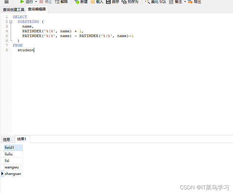 需要用到兩個SQL函數的配合,一個是PATINDEX()函數或者charindex()函數,一個是substring()函數
