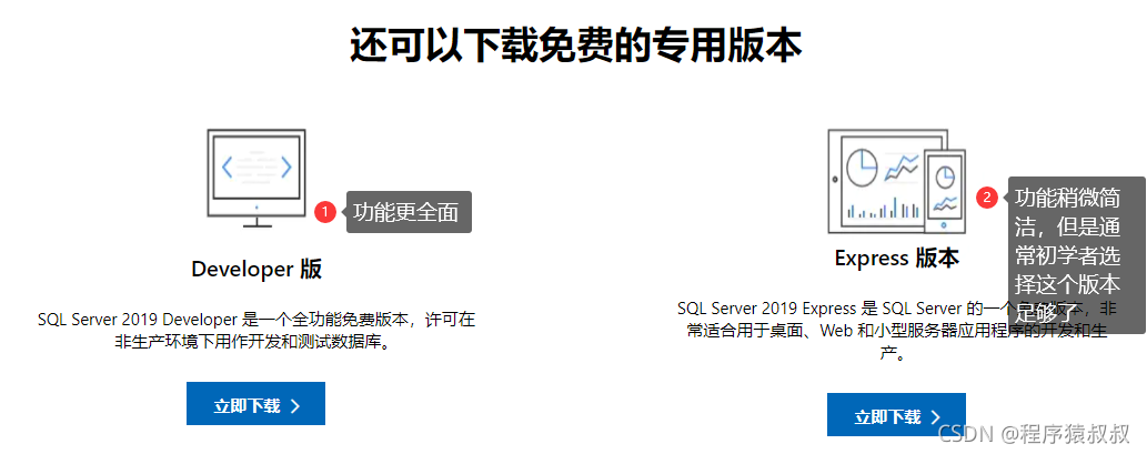 第一步:打開微軟官方,下載數據庫,通常我們下載Express版本。