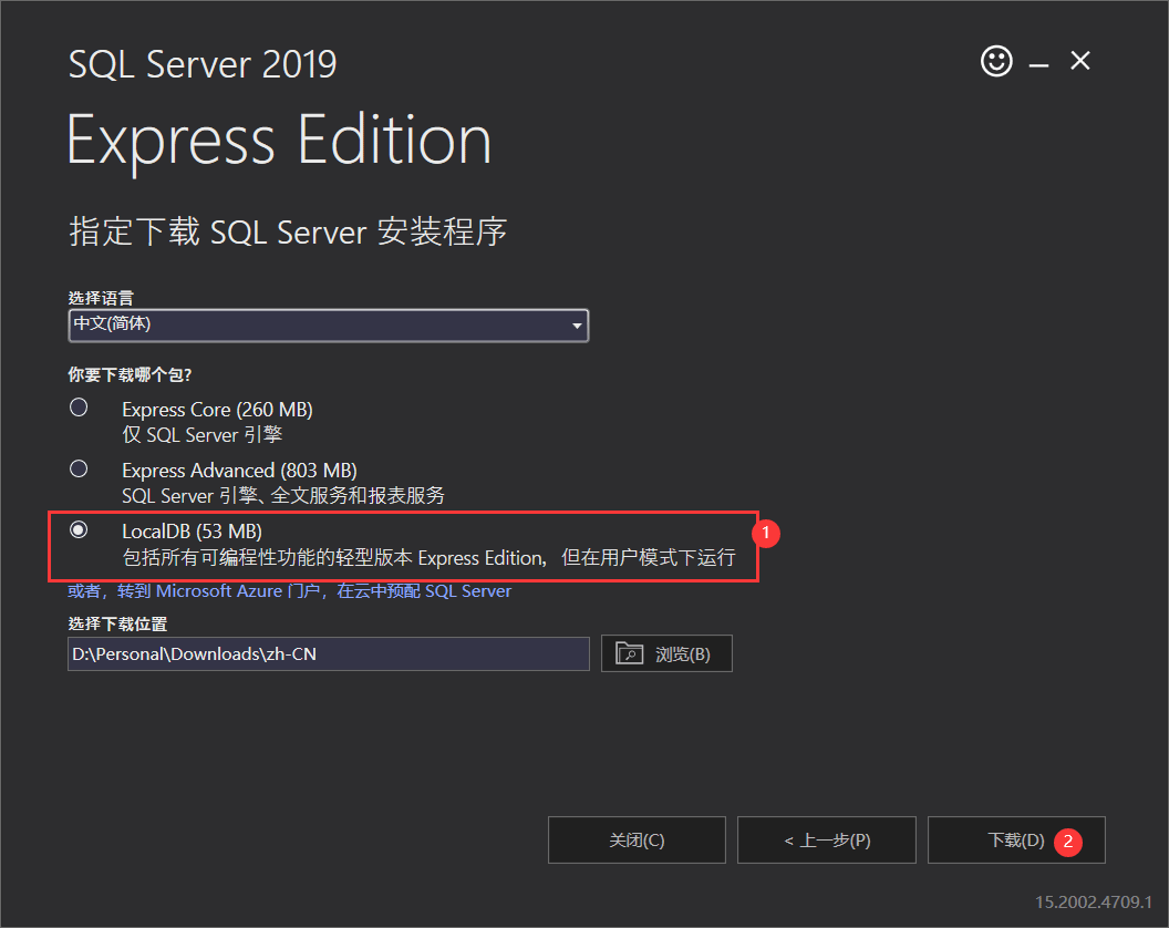 注:SQL Server 2016 Express LocalDB微軟已經(jīng)在SQL Server Express不再提供,目前為最新的為2019版本。