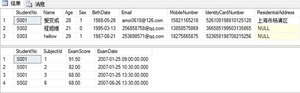 有兩張表:Student(學生表)和 Score(成績表),數據如下: