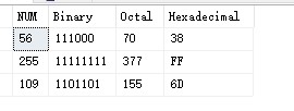 很簡單的一張表,就一個字段num,我想把這個字段的int型數字分別轉化成二進制八進制和十六進制的數值,有現成的進制轉化的表值函數。