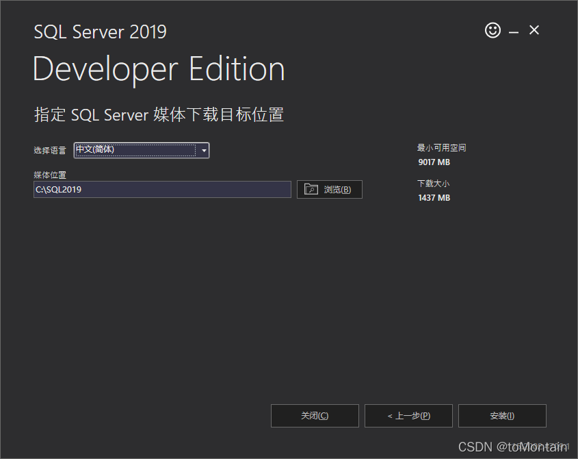 1、官網下載SQL Server 2019 Developer: Developer下載地址 或者點擊這里下載