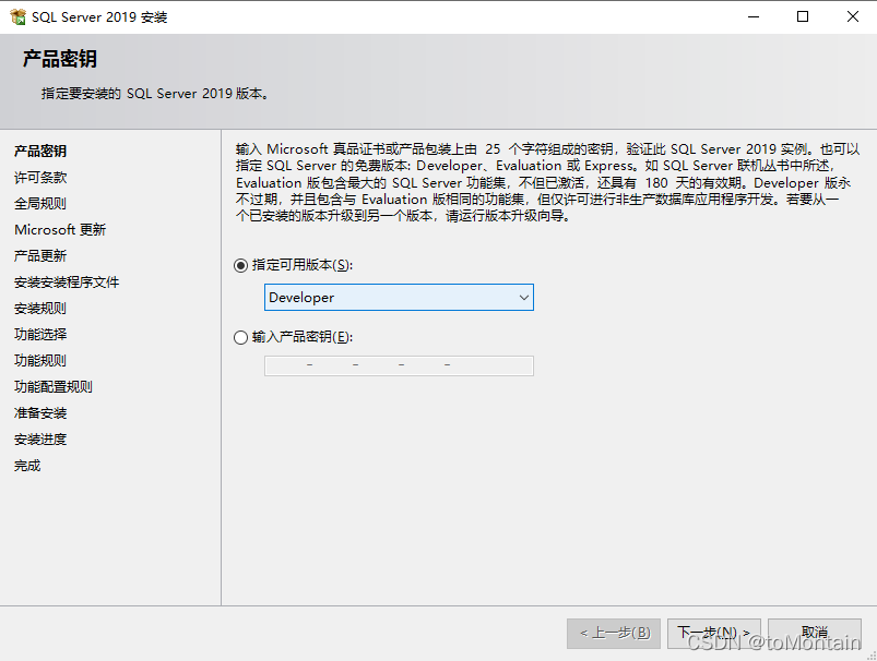 選擇Developer版本,點擊下一步:
