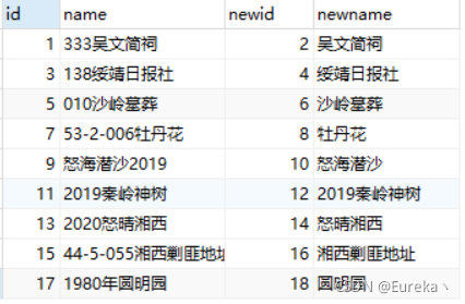 SELECT a.id,a.`name`,b.newid,b.newname FROM z_good a,z_good_new bWHERE INSTR(a.`name`,b.newname)>0 OR INSTR(b.newname,a.`name`)>0