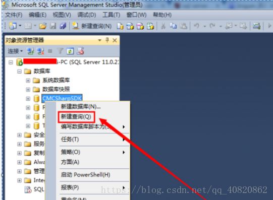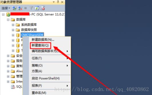 ****2.****打開數(shù)據(jù)庫,右鍵某一個(gè)數(shù)據(jù)庫,選擇“新建查詢(Q)”。
