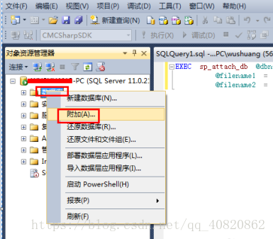 ****1.****在“數(shù)據(jù)庫”處右鍵選擇“附加”,打開附加界面。