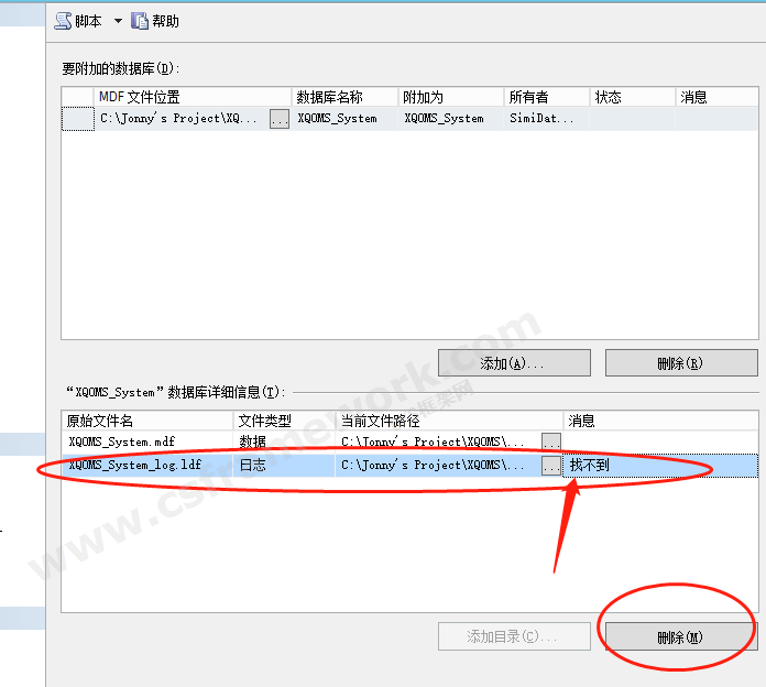 解決方案1 - 直接刪除本地ldf日志文件:(比較靠譜方案!)