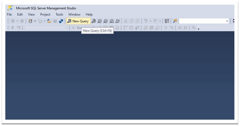 為避免多個連接,我們將打開“SQL Server Management Studio”,但不連接到服務器。換句話說,我們將關閉“連接到服務器”窗口,同時關閉“對象資源管理器”。然后我們將點擊“新建查詢”。