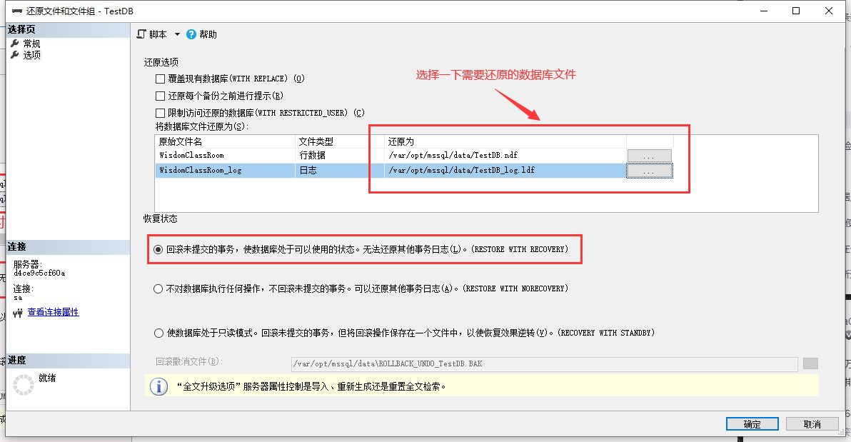 第二個(gè)紅框,取消默認(rèn)勾選的"還原前進(jìn)行結(jié)尾日志備份",本人操作時(shí),不取消這個(gè)勾,會(huì)出現(xiàn)錯(cuò)誤: