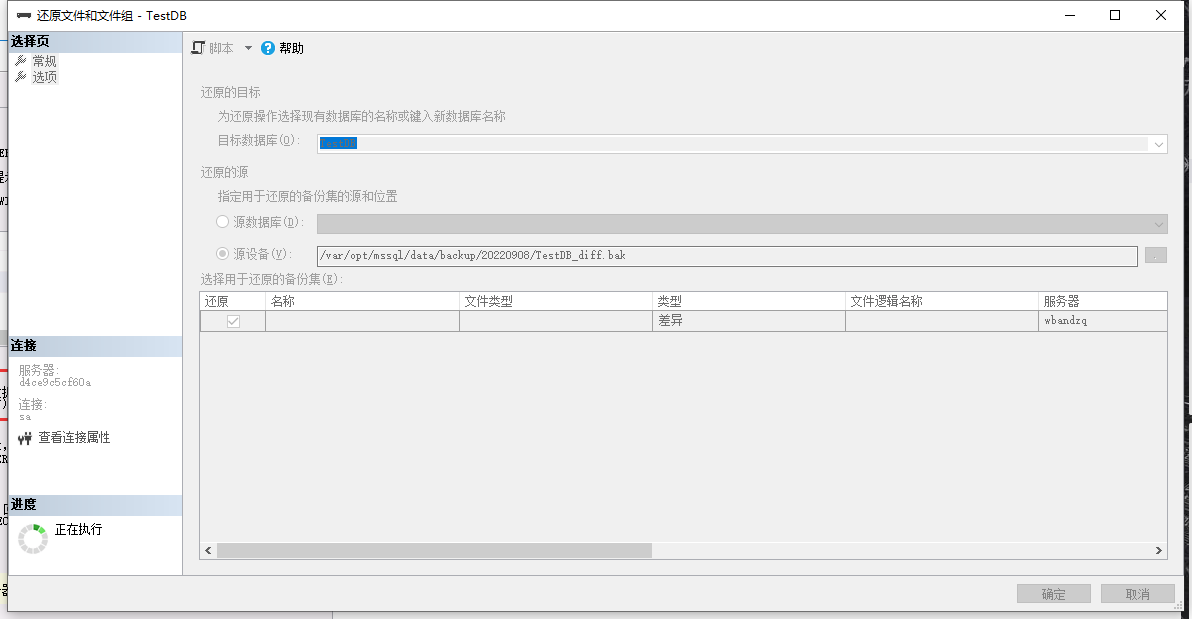 數(shù)據(jù)庫(kù)名字后面出現(xiàn) ”正在還原...“,說(shuō)明此時(shí)你還需要還原差異備份。
