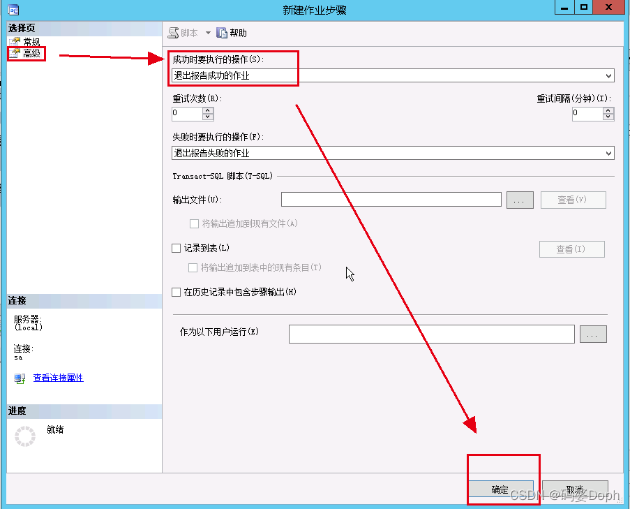 - “成功時要執行的操作”需要選擇“退出報告成功的作業”,否則新建作業會報錯。