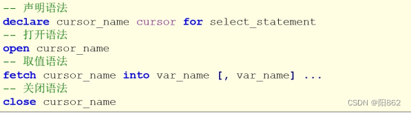 在語法中,變量聲明、游標聲明、handler聲明是必須按照先后順序書寫的,否則創(chuàng)建存儲過程出錯。
