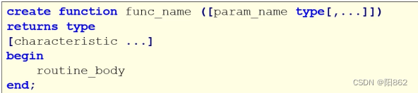 (4)characteristic:可選項,指定存儲函數(shù)的特性。