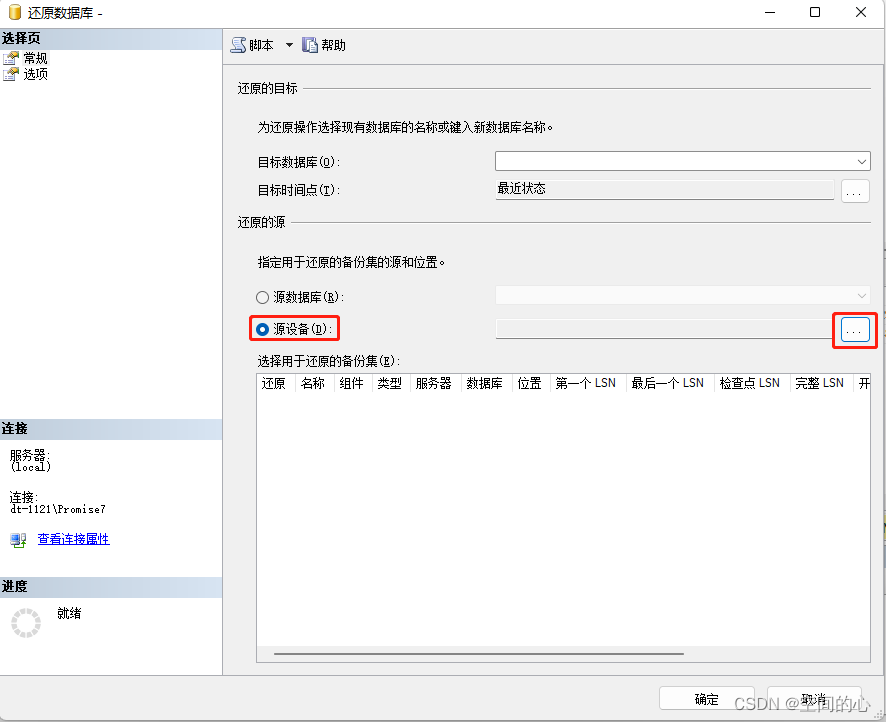 在還原的源中選擇源設備→點擊選擇框