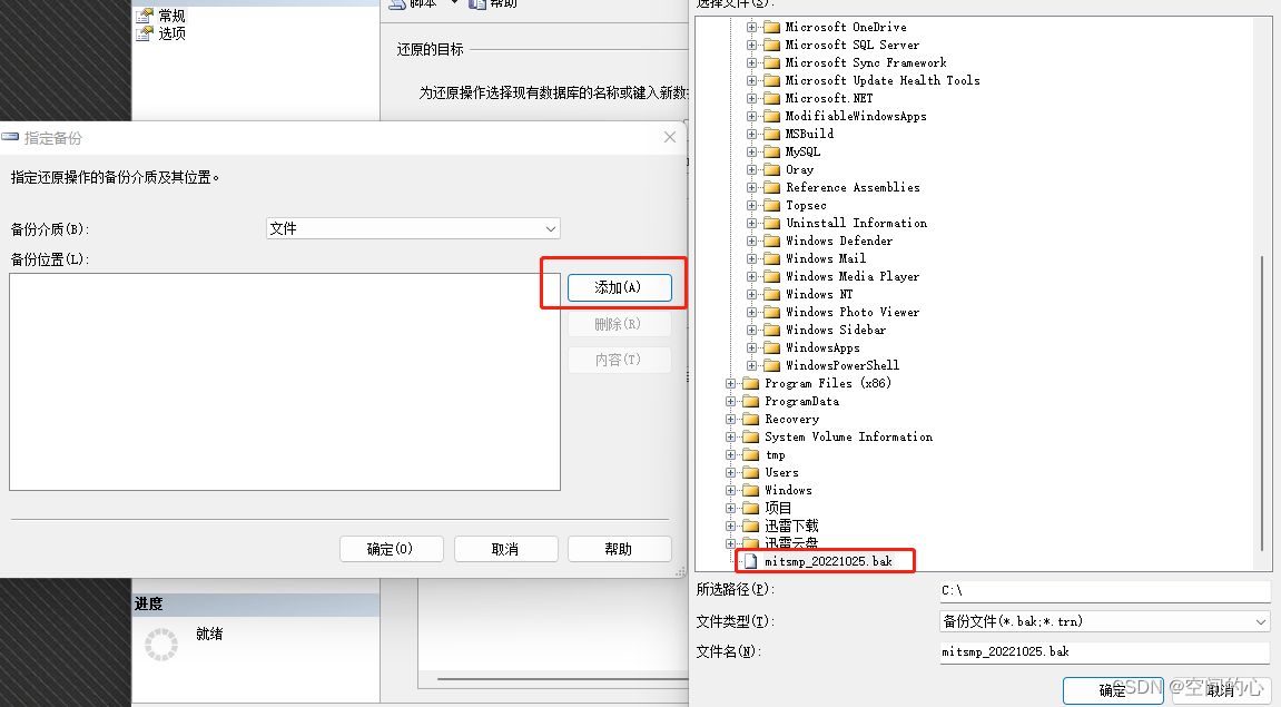 在指定備份中點擊添加→選擇具體文件→確定→確定
