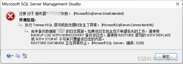 2.System.Data.SqlClient.SqlError: 尚未備份數據庫 "xxx" 的日志尾部