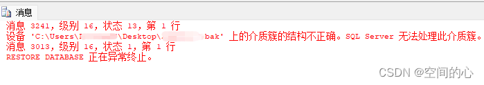 2.設備'xxx.bak'上的介質簇的結構不正確。