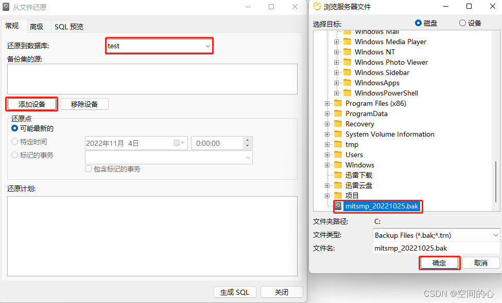 即可還原BAK數據庫備份文件