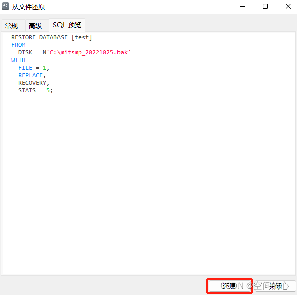 RESTORE DATABASE [test] --為待還原庫名