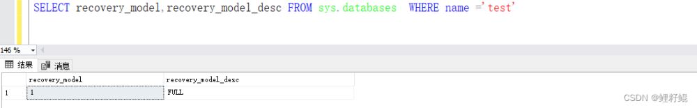 腳本檢查恢復模式:SELECT recovery_model,recovery_model_desc FROM sys.databases WHERE name ='test';