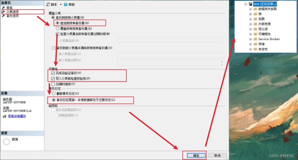 完成上述事務日志的備份后,我們就需要將數據進行還原。