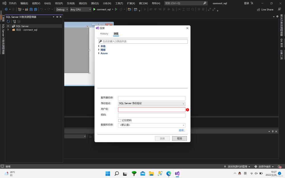 打開(kāi)vs,點(diǎn)擊 視圖,打開(kāi)sql資源管理器,添加SQL Server