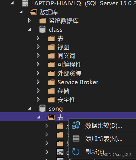 如圖,就可以看到vs已經(jīng)連接到了自己的數(shù)據(jù)庫(kù),class和song兩個(gè)數(shù)據(jù)庫(kù) 。可以看到class下面有五個(gè)表。