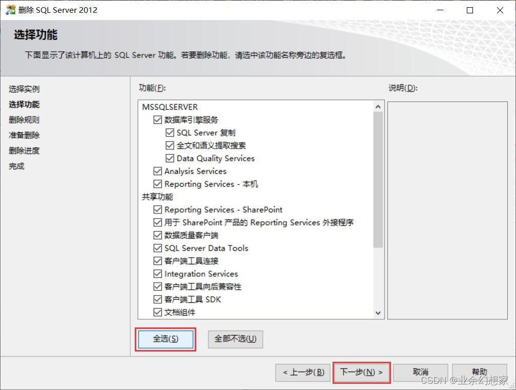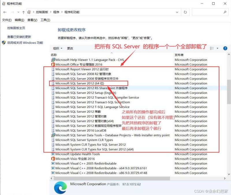 注:一些版本的 SQL Server 如果還單獨安裝了 SQL Server Management Studio (SSMS) 管理工具,那么這個也要一起卸載掉