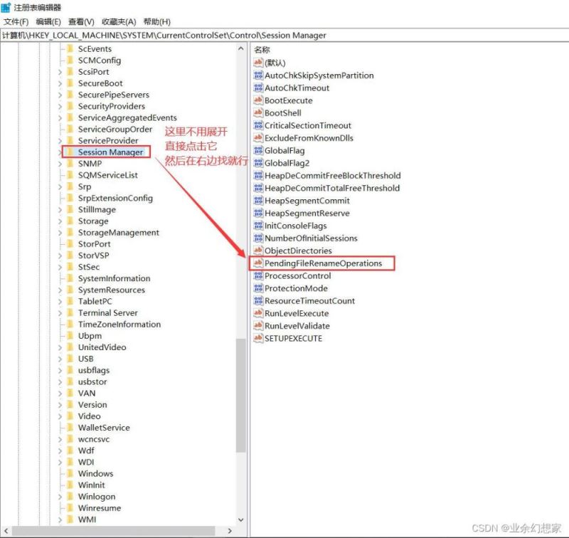 在剛剛展開的列表里面找到 Session Manager ,在右邊找到 PendingFileRenameOperations 鼠標【右鍵】-【刪除】