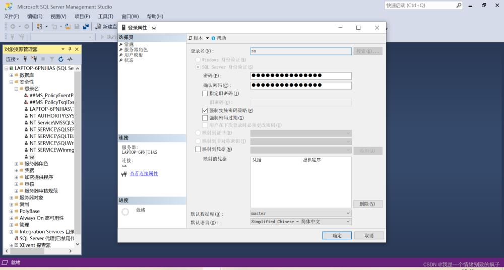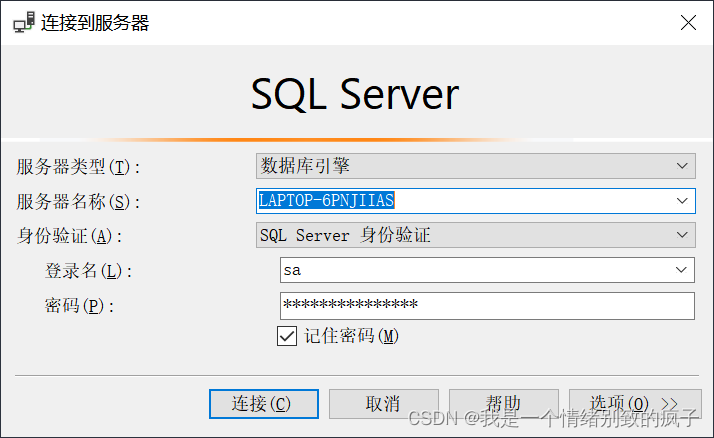 2.SQLServer登錄,需要輸入用戶名和密碼,默認(rèn)用戶名“sa”