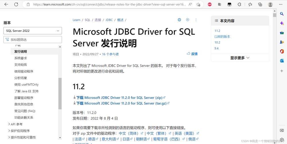 https://learn.microsoft.com/zh-cn/sql/connect/jdbc/release-notes-for-the-jdbc-driver?view=sql-server-ver16#previous-releases