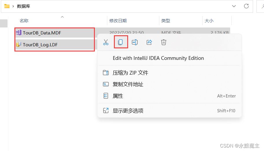 1.選擇要添加的數據庫文件,也就是.MDF和.LDF文件,將他們復制到SQL Server的工作目錄下的存放數據腳本的位置。