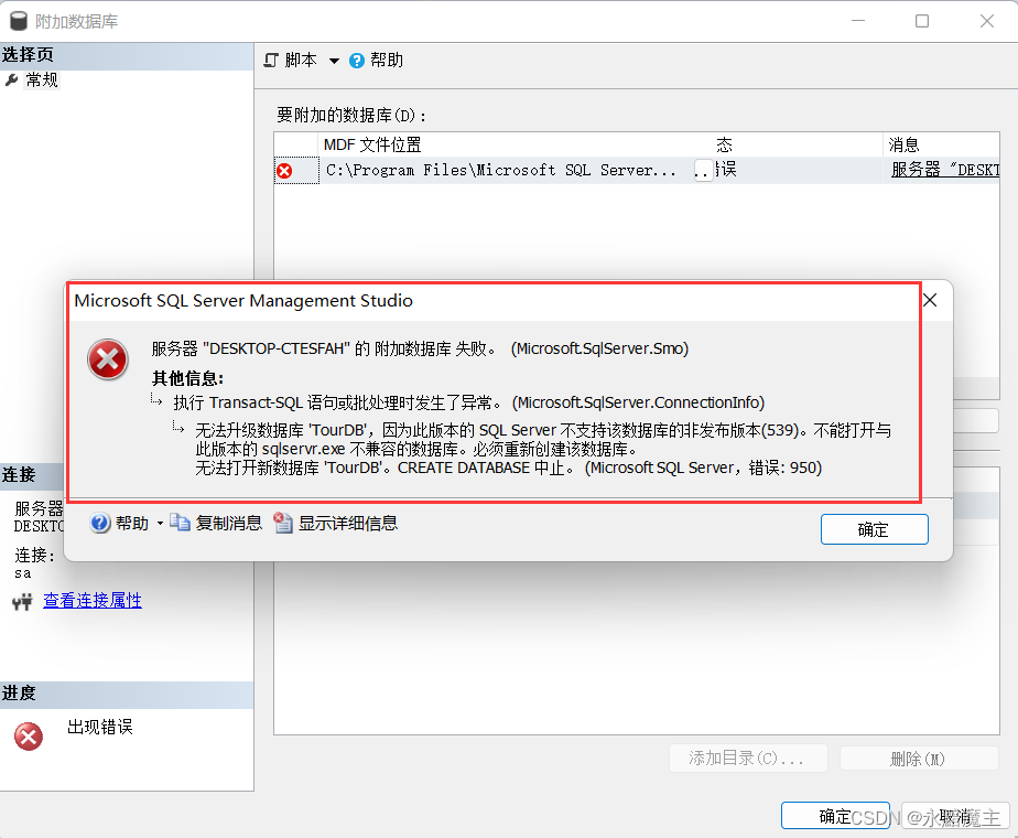 1.常見的無法附加數據庫時,出現的錯誤