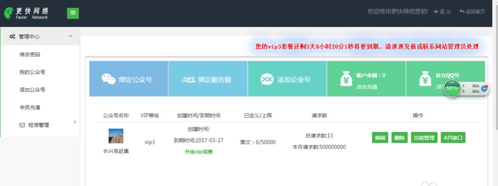 登陸后先綁定微信公眾號(hào),然后點(diǎn)擊功能管理