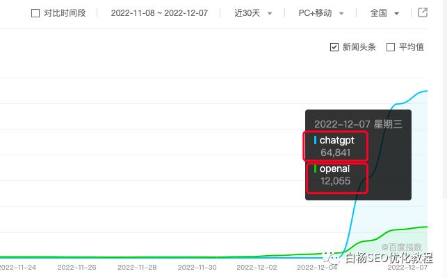 百度指數,ChatGPT百度指數從0到64841,帶動OpenAI從幾百到上萬,如圖,