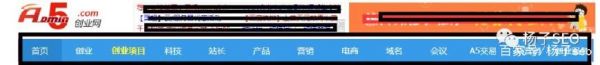 以上所述的導航方式在各種大型網站上基本都可以看見,當然了,對于中小型網站楊子建議也可以根據這個位置規劃導航。下面以A5創業網為例來簡單介紹下頂部導航的位置規劃。
