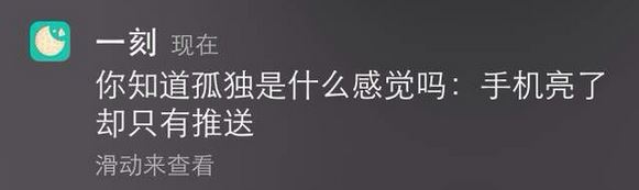 等一個人回微信,看到屏幕亮了以為是他的回復(fù),結(jié)果卻被一個APP捕捉到了內(nèi)心的孤獨(dú),在用戶的百無聊賴之際,這個推送提供了用戶打開APP的觸發(fā)點(diǎn)。