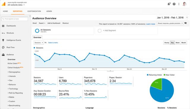網(wǎng)站分析工具十分重要,Google Analytics(分析)適用于復(fù)雜的分析。如你所料,Google Analytics(分析)可輕松地與其他Google資源(例如AdWords,Search Console,DoubleClick以及最近的Firebase)整合。雖然Google Analytics(分析)免費(fèi)版有一些限制,但功能強(qiáng)大,足以滿足中小型企業(yè)的需求。
