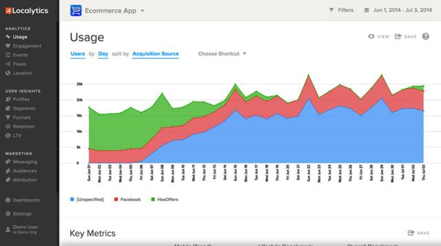 Google Analytics(分析),Kissmetrics和Mixpanel主要關(guān)注網(wǎng)絡(luò)分析,并具有集成應(yīng)用分析能力,Localytics則是關(guān)于移動(dòng)應(yīng)用分析。Localytics是了解用戶如何與應(yīng)用互動(dòng)的理想選擇。它可以告訴你,每個(gè)用戶打開應(yīng)用程序的頻率,花費(fèi)了多少時(shí)間使用,以及應(yīng)用程序中的哪些活動(dòng)或內(nèi)容得到了用戶的最多關(guān)注。