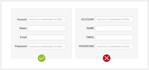 2、英文標簽避免全部大寫一些英文界面的表單設計,我們要避免標簽的全大寫。全部大寫的標簽容易造成閱讀和瀏覽上的困難。
