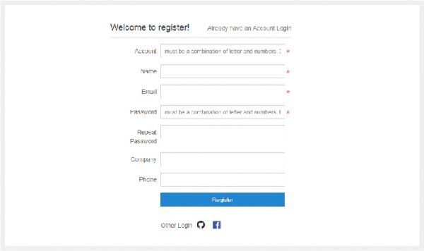 案例一:蟬知注冊界面大家可以實際操作下,注冊界面比較簡潔,標簽都采用居左標簽的設計方式。是個比較不錯的表單,但是個人覺得公司/組織那一項可以省略,畢竟不是必填項。
